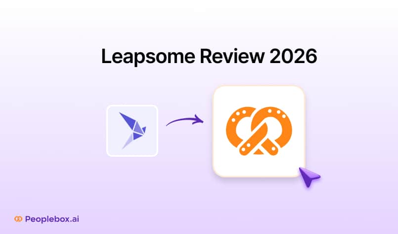 leapsome Review 2026 featured image with leapsome logo transitioning toward Peoplebox.ai logo on a purple gradient background, representing comparison and alternatives.